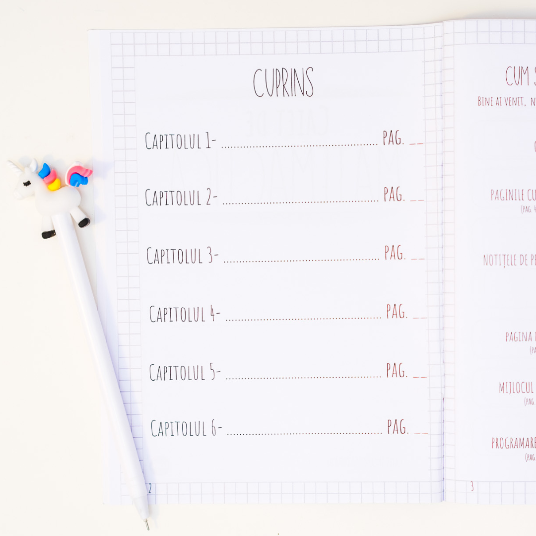 *foile caietului sunt realizate din hârtie de foarte bună calitate (80 g/mp), care nu absoarbe cerneala.