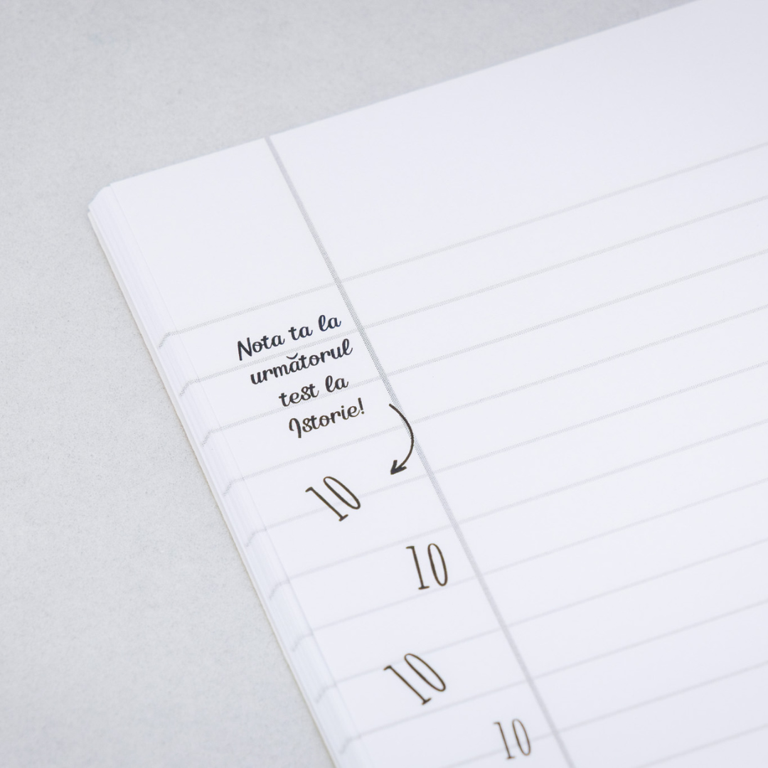 *foile caietului sunt realizate din hârtie de foarte bună calitate (80 g/mp), care nu absoarbe cerneala.