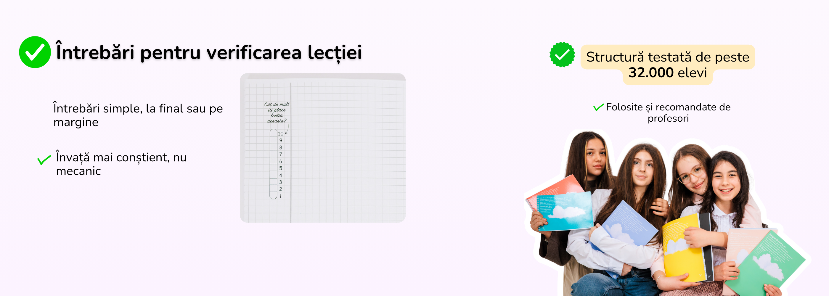 Da 💜 Partea de teorie este realizată chiar cu ajutorul profesorilor, astfel încât informația să fie clară, corectă și adaptată nivelului elevilor.