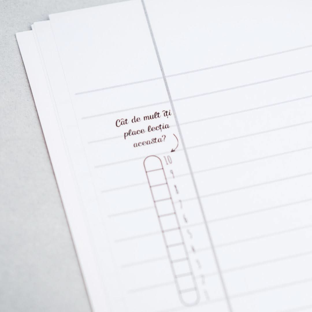 *foile caietului sunt realizate din hârtie de foarte bună calitate (80 g/mp), care nu absoarbe cerneala.