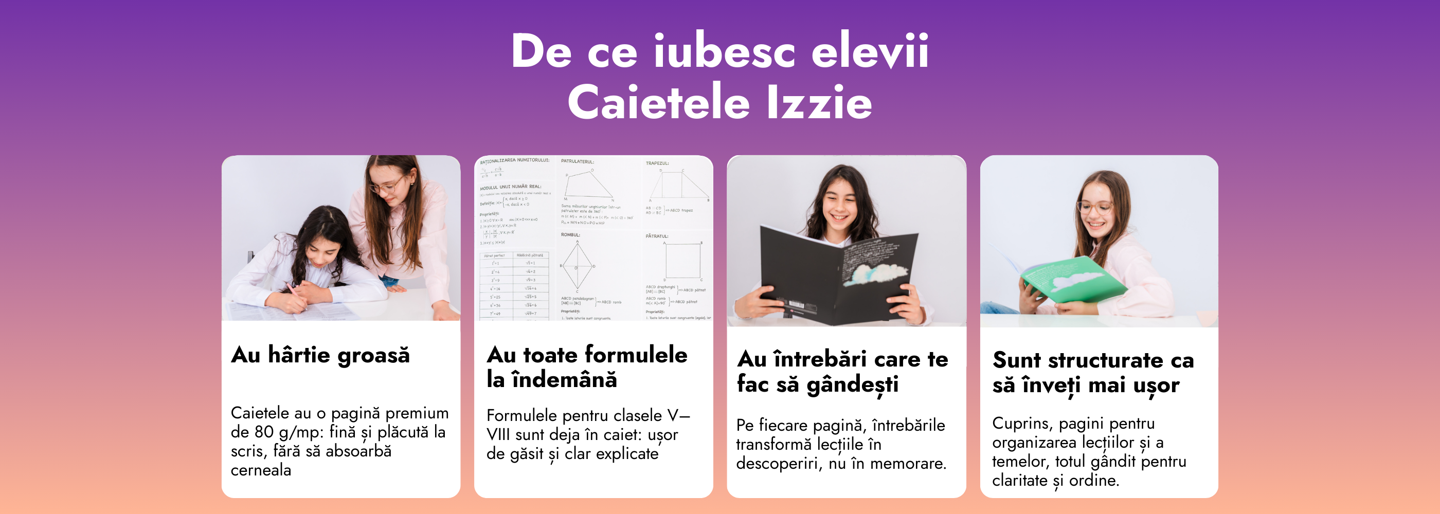 Începe Modulul 3 cu setul complet de caiete Izzie pentru clasa a VII-a! 💜